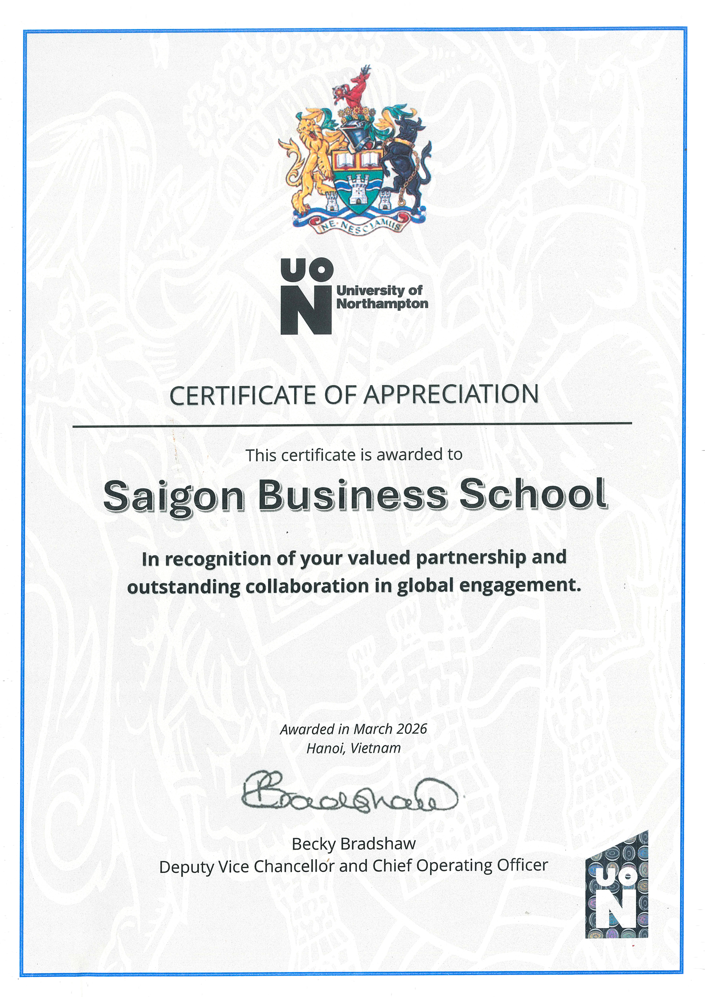 Những định hướng hợp tác và phát triển này không chỉ dừng lại ở tầm nhìn chiến lược, mà đang từng bước được hiện thực hóa thông qua kết quả học tập và hành trình chuyển tiếp của sinh viên. Trải qua quá trình học tập, rèn luyện tại Saigon Business School, nhiều sinh viên đã sẵn sàng nắm bắt cơ hội học tập tại môi trường quốc tế, trong đó có Đại học Northampton.