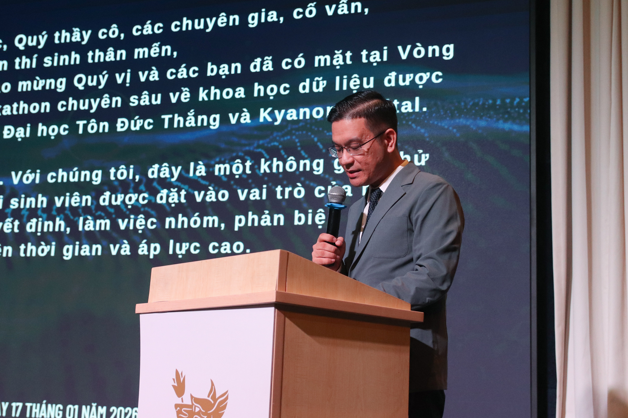 Một trong những điểm nhấn sâu sắc mà thầy Hoàng Văn Cương chính chia sẻ trong buổi lễ khai mạc đầu tiên của cuộc thi là việc định vị lại vai trò của người làm dữ liệu. Thầy khẳng định: “Điểm đặc biệt không nằm ở việc viết bao nhiêu dòng code, mà ở cách biến dữ liệu thành lập luận, mô hình thành giá trị.”